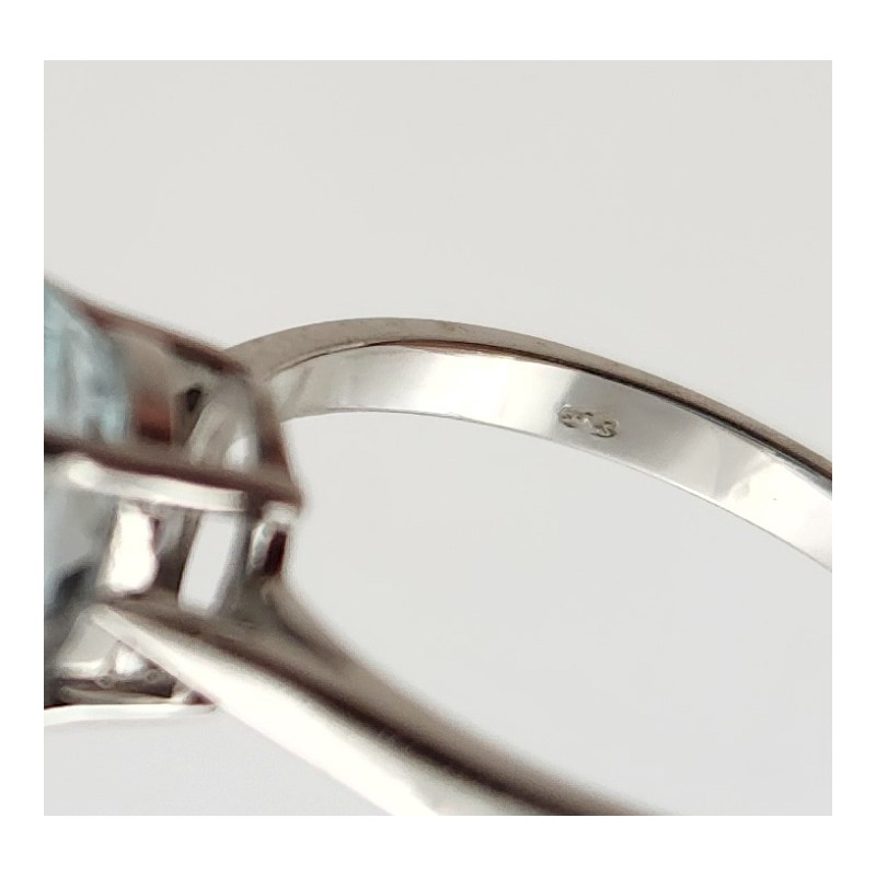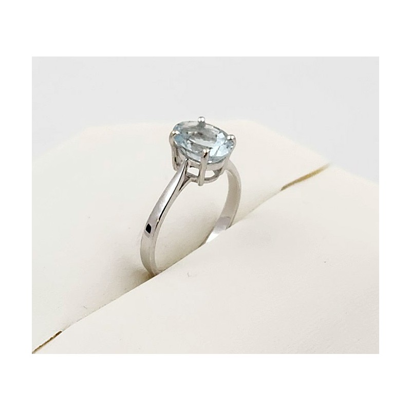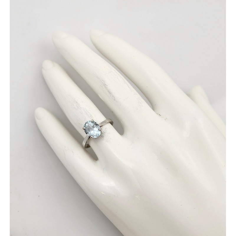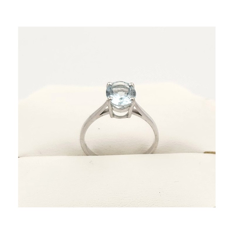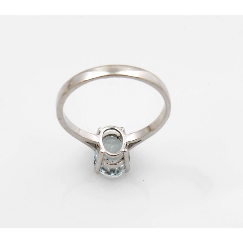 Bague récente en or blanc 18 carats. Le poinçon m'est inconnu mais elle a été testée et je la garantis en or 18 carats. Elle est sertie d'une belle aigue-marine montée sur 4 griffes, la pierre est impeccable. Elle mesure environ 9 x 7 mm. Poids de la bague 2,4 grammes. Excellent état. Une bague classique, indémodable.